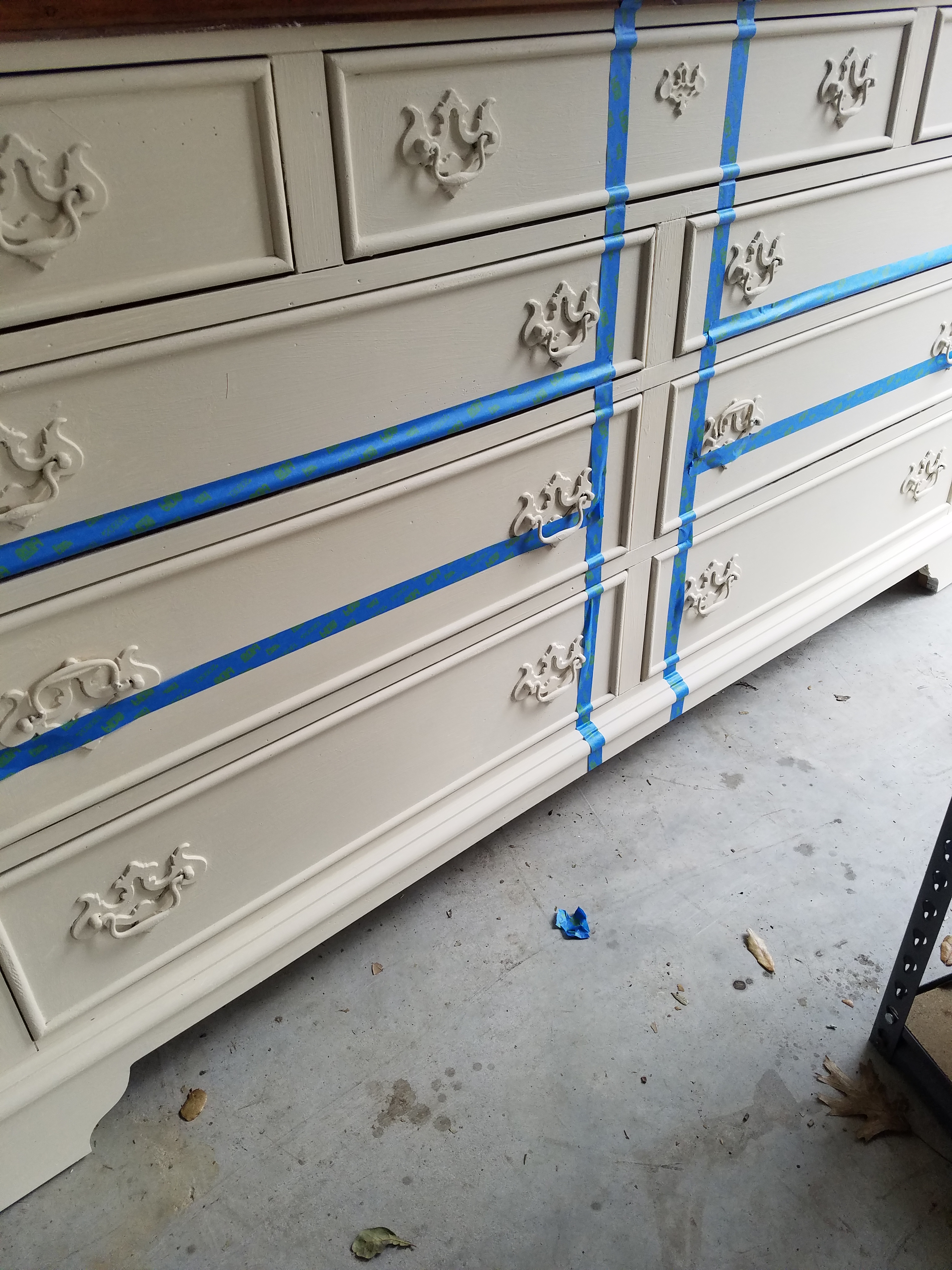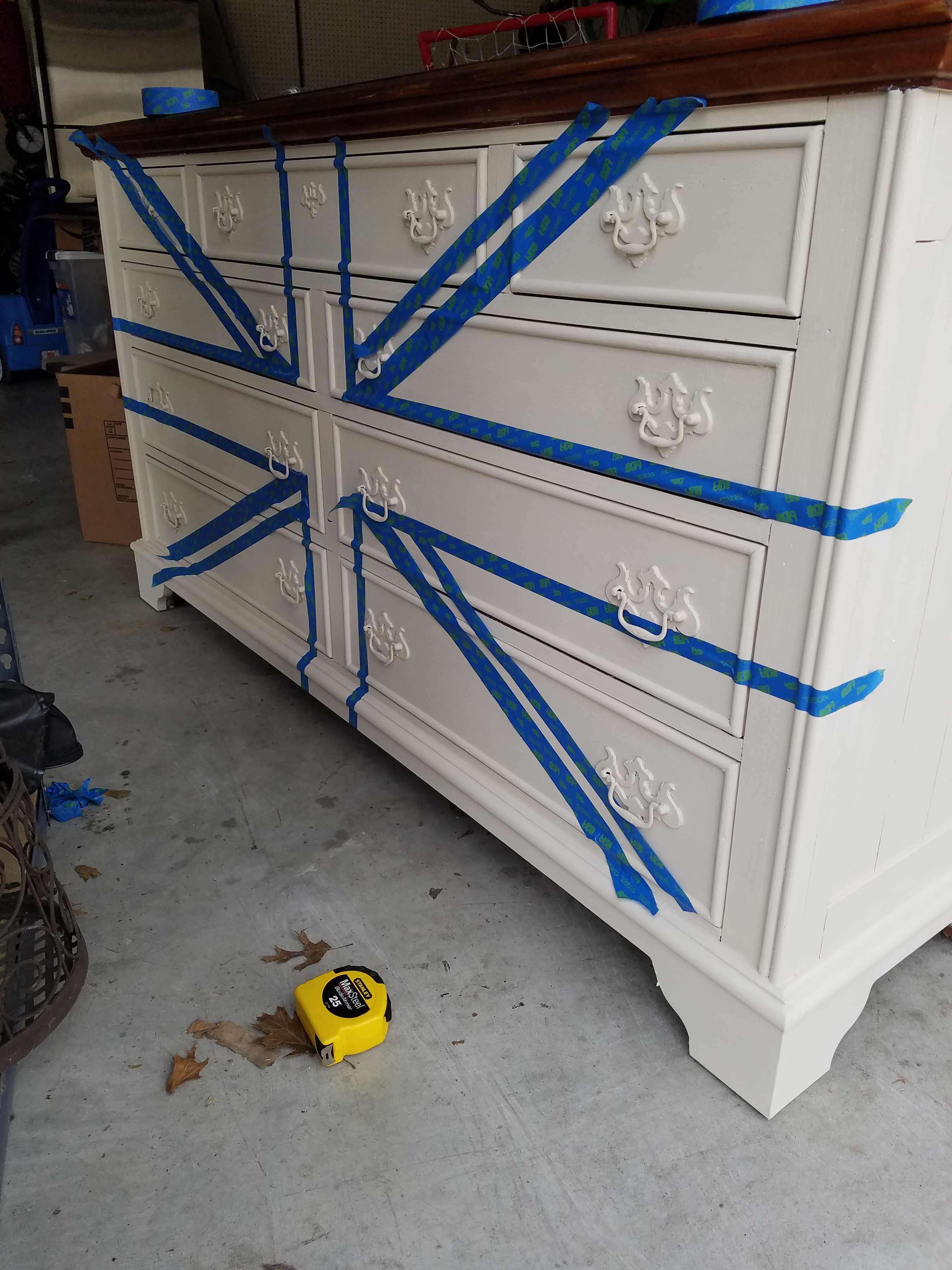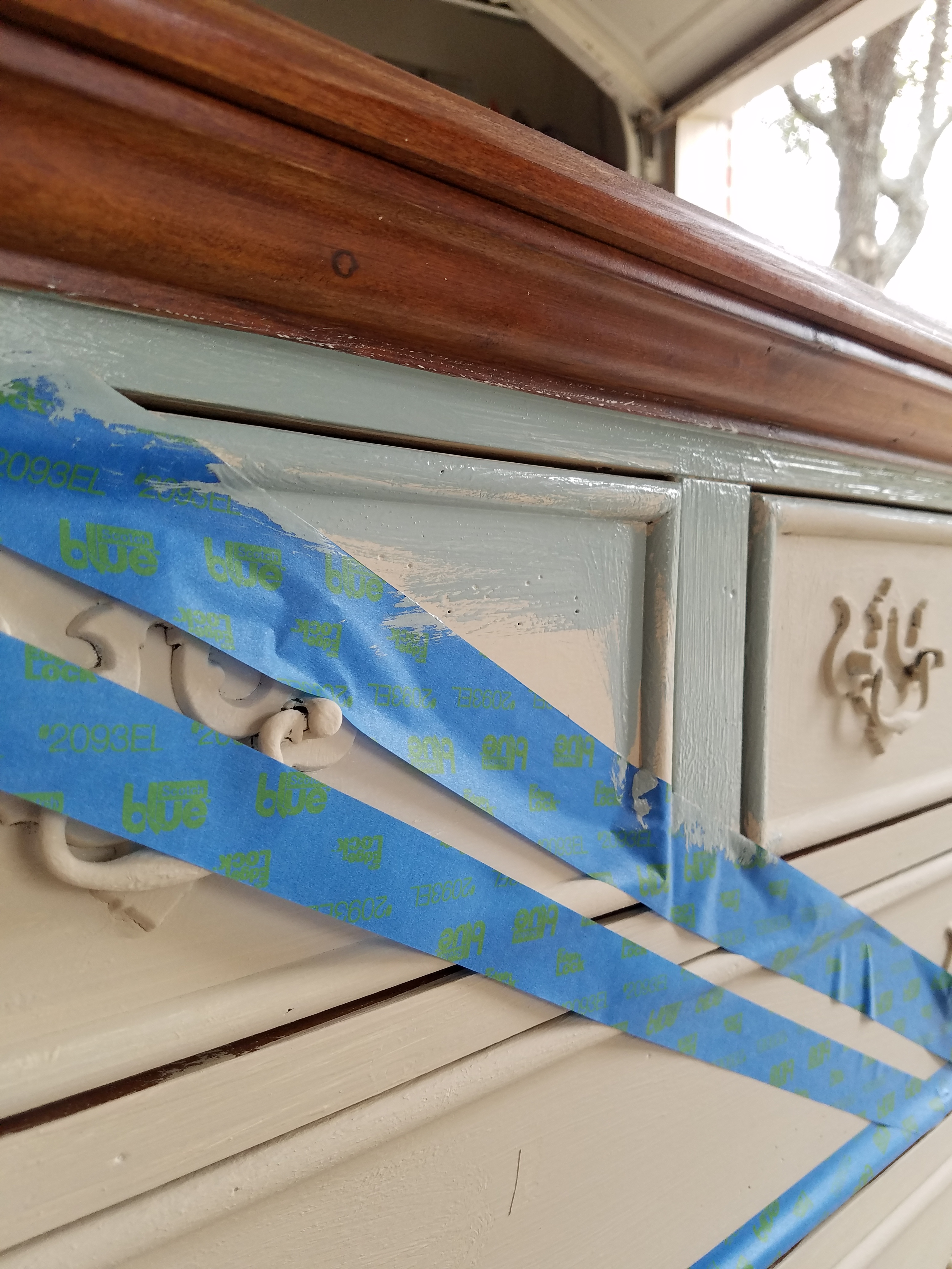 The most fun part of this project was removing the tape…Voila! It turned out so well. Truly one of my favorite pieces in our home!! After a coat of clear wax and a little buffing 24 hours later, it was ready to move to its new home!