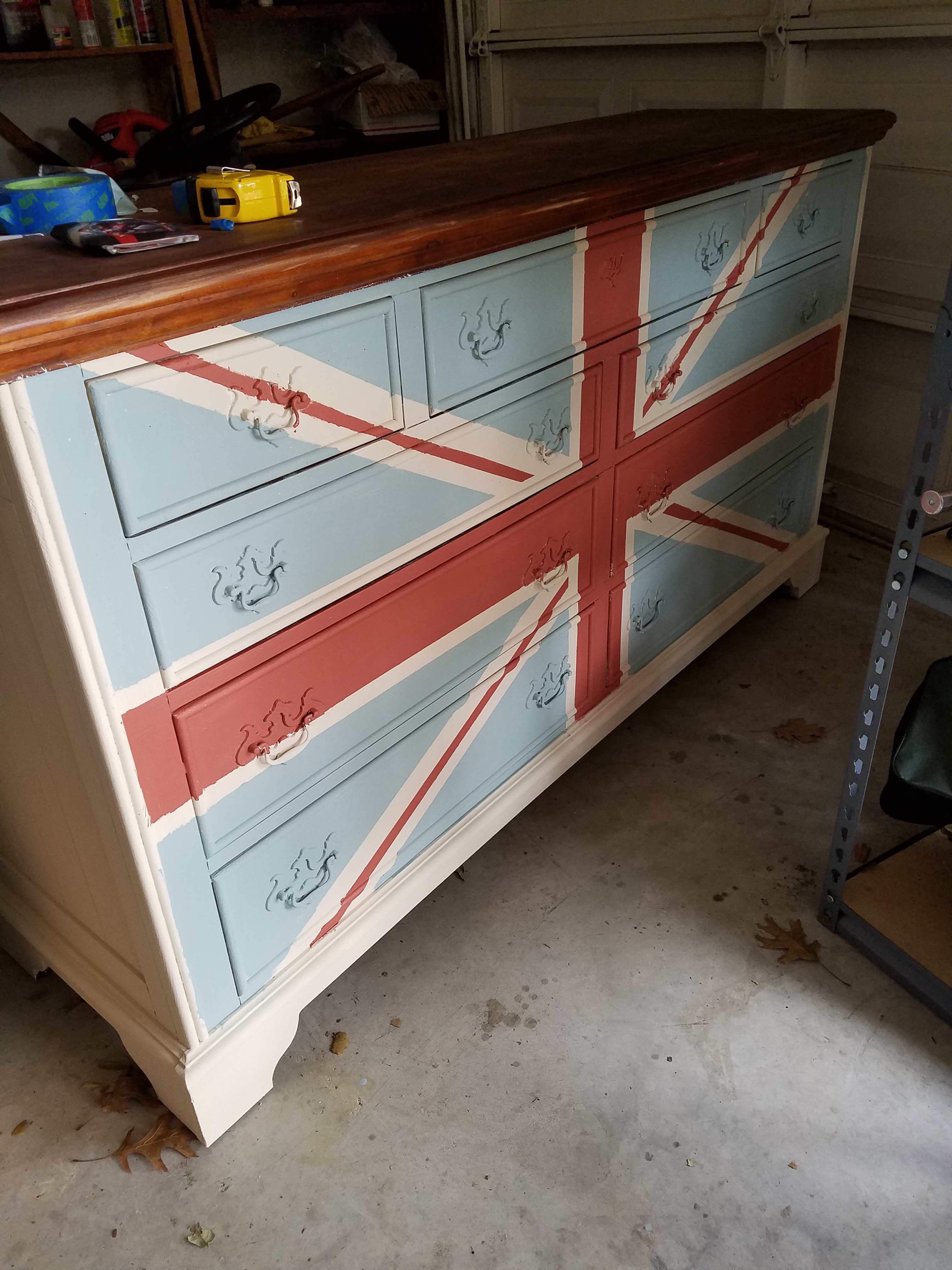 Next it was time to tape off the Union Jack. Super intimidating! It is so fun to freehand when painting, but some projects require some good strong lines that you can only get from taping. 🙂 That was probably the most involved part of my project!