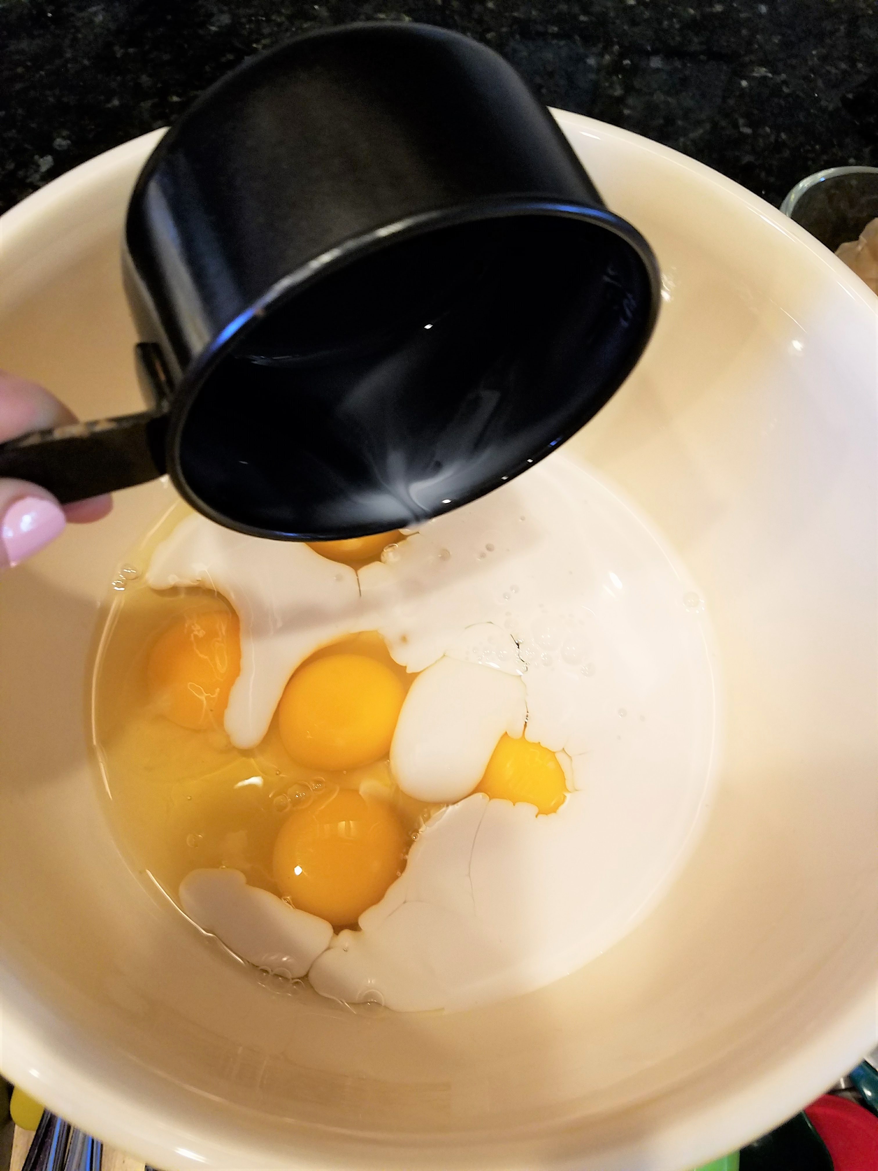 What I love about this recipe is the sky is the limit! You could do roasted red peppers, cumin and chili powder to give it a more southwest feel. You could do ham and cheese to keep it classic. You could do spinach and nutmeg for a quiche lorraine. And you could easily keep this with all the dairy by using regular milk and cheese. The options are endless…just use your creativity.