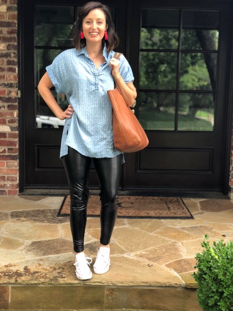 Tortoise statement earrings, OPI Como Se Llama nail polish, Starbucks Via Instant Pumpkin Spice Latte, a camo scarf, and faux leather leggings! Yes, please!