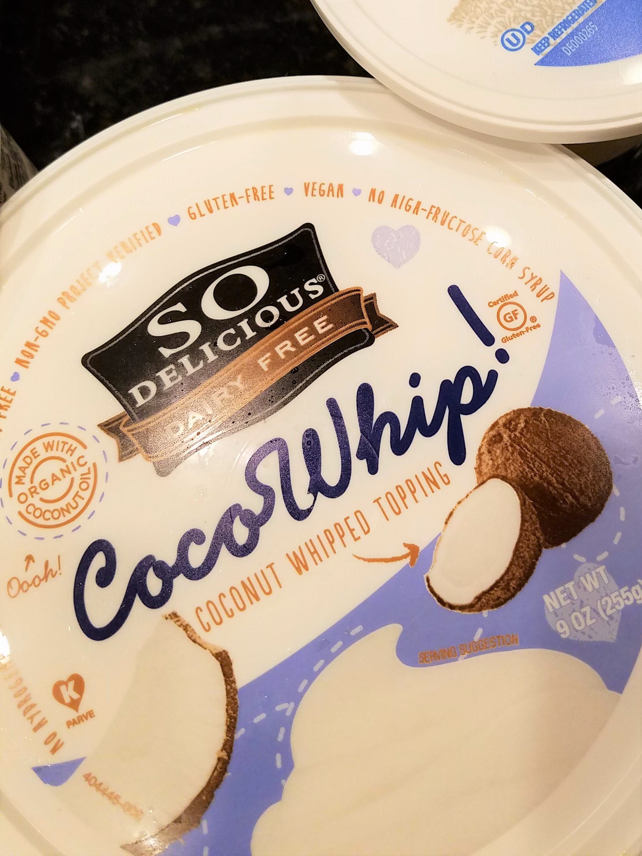 - 2 – 8 oz container whipped topping, thawed – I use coconut whipped cream