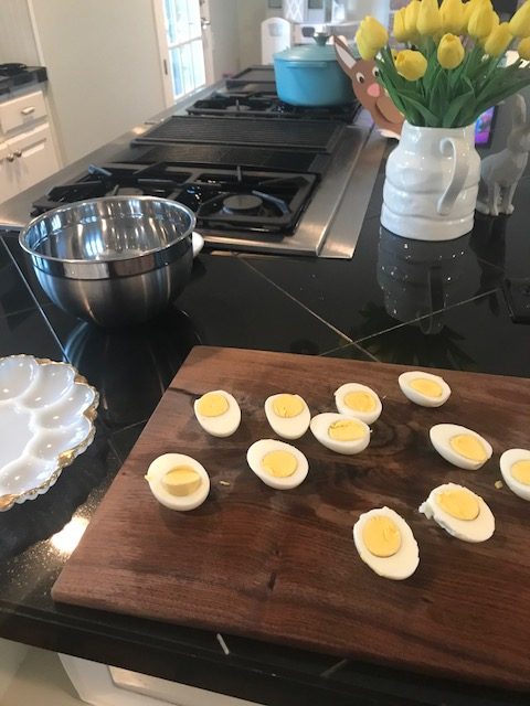 Easter is one of my favorite holidays, and I can’t let it pass without making my mom’s famous deviled eggs. It just wouldn’t be Easter without them….other food items can come and go, but this one is a tradition.