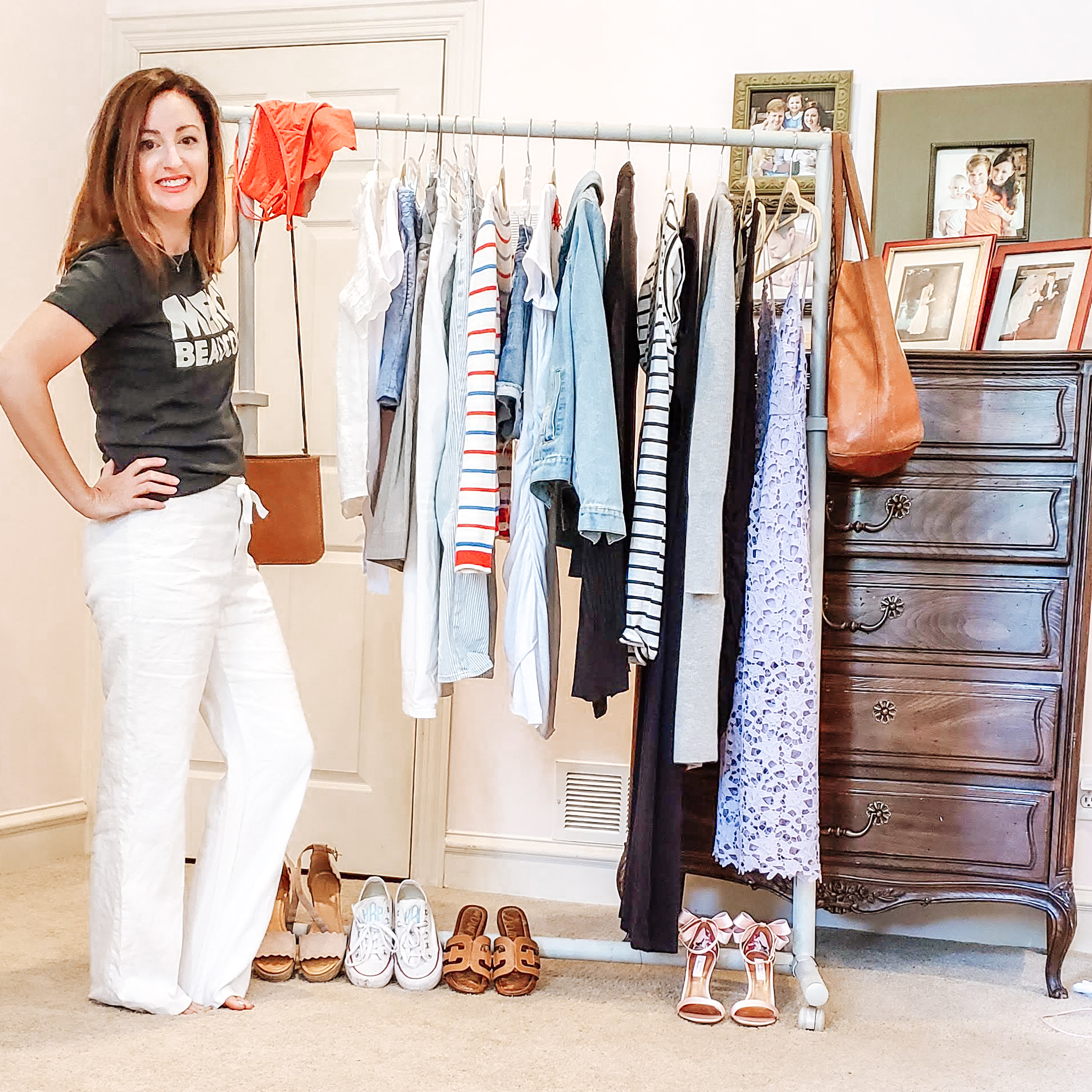 My biggest tip in it all! Start packing and planning early! I literally grabbed a rolling rack and hung up everything….and I mean everything I was thinking of taking….about two weeks in advance. I kept an eye on the weather which ended up changing while we were there, but I was prepared because I had planned in some light layers!