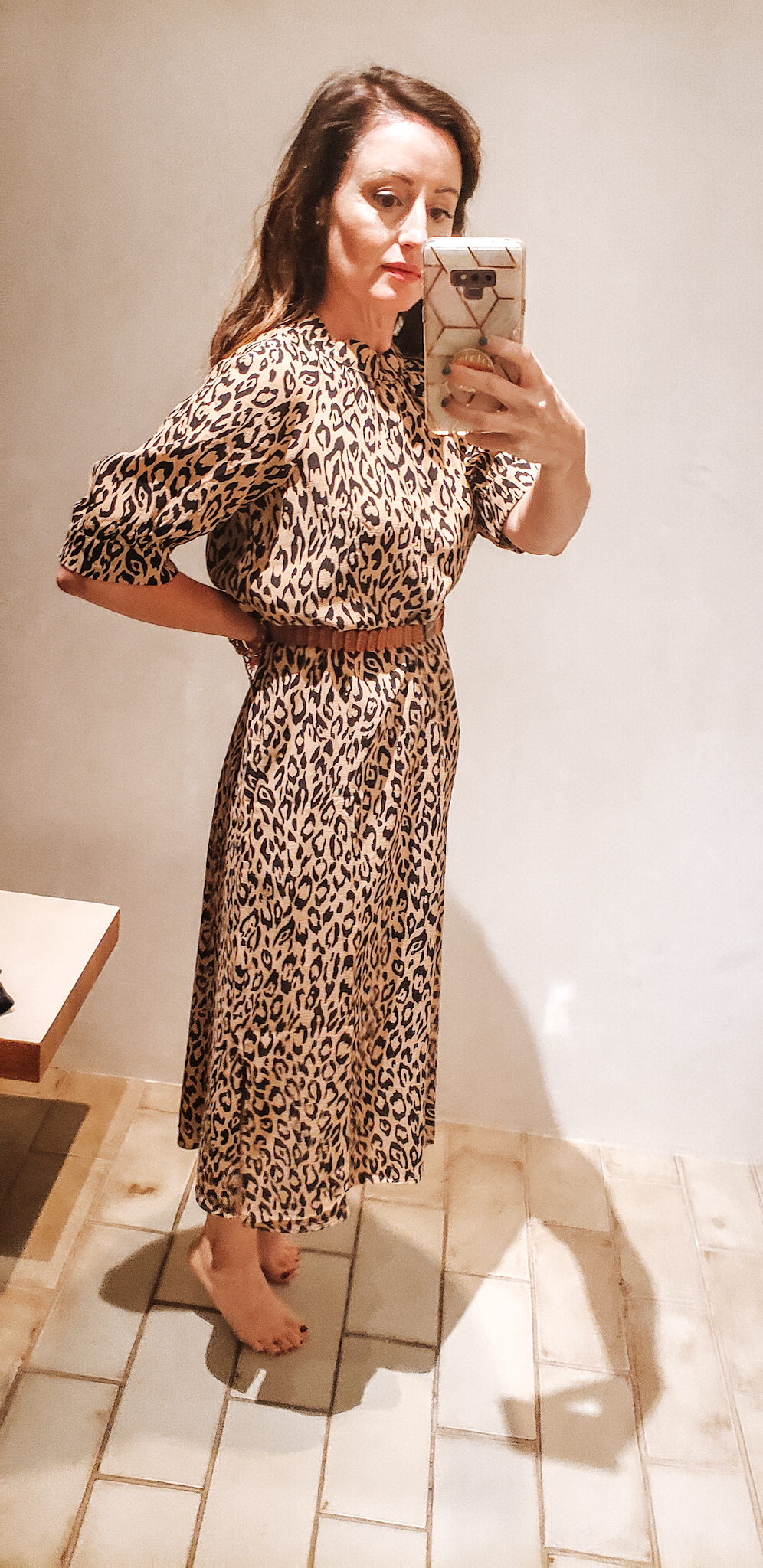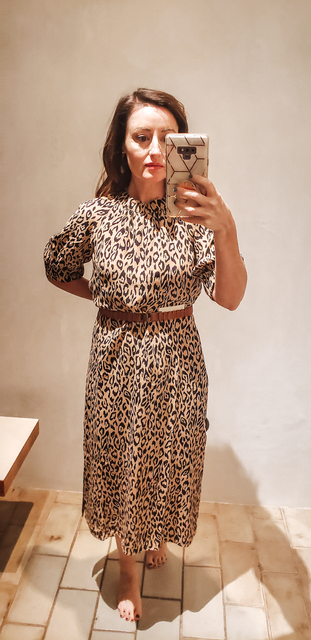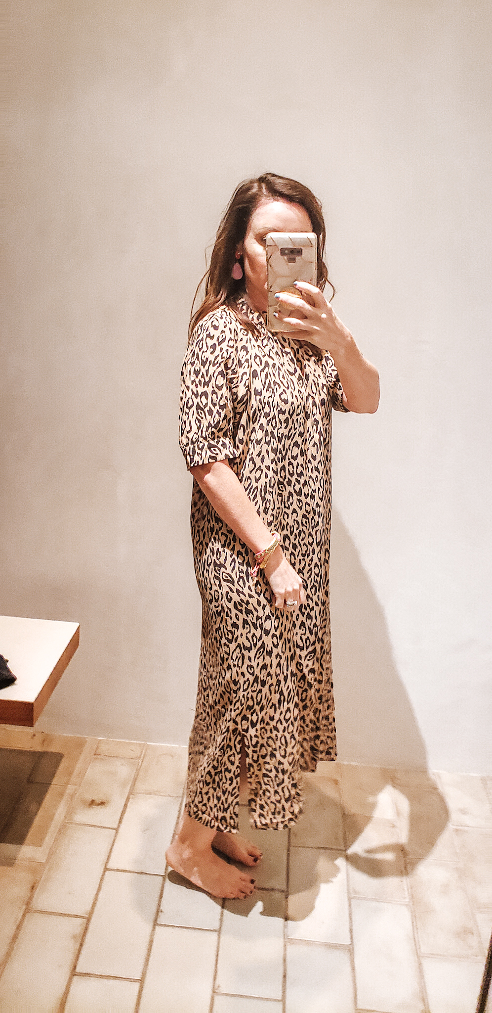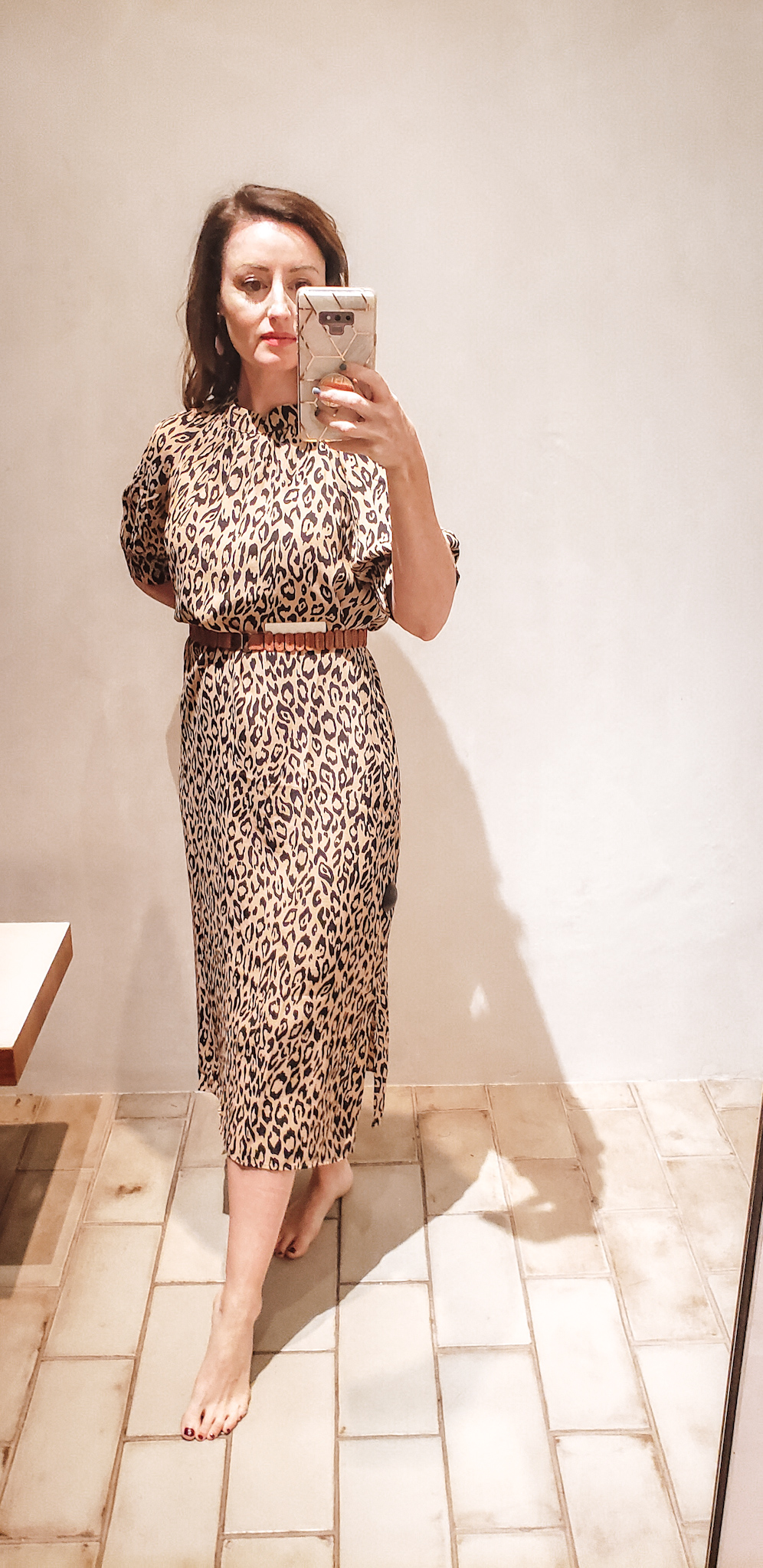 This first look is basically how I styled it for my husband’s work event except I added strappy heels! I belted it for some waist definition and to shorten it some since I am vertically challenged! 🙂 Plus, the booties make this versatile to head to lunch with the girls or wear it out to dinner!