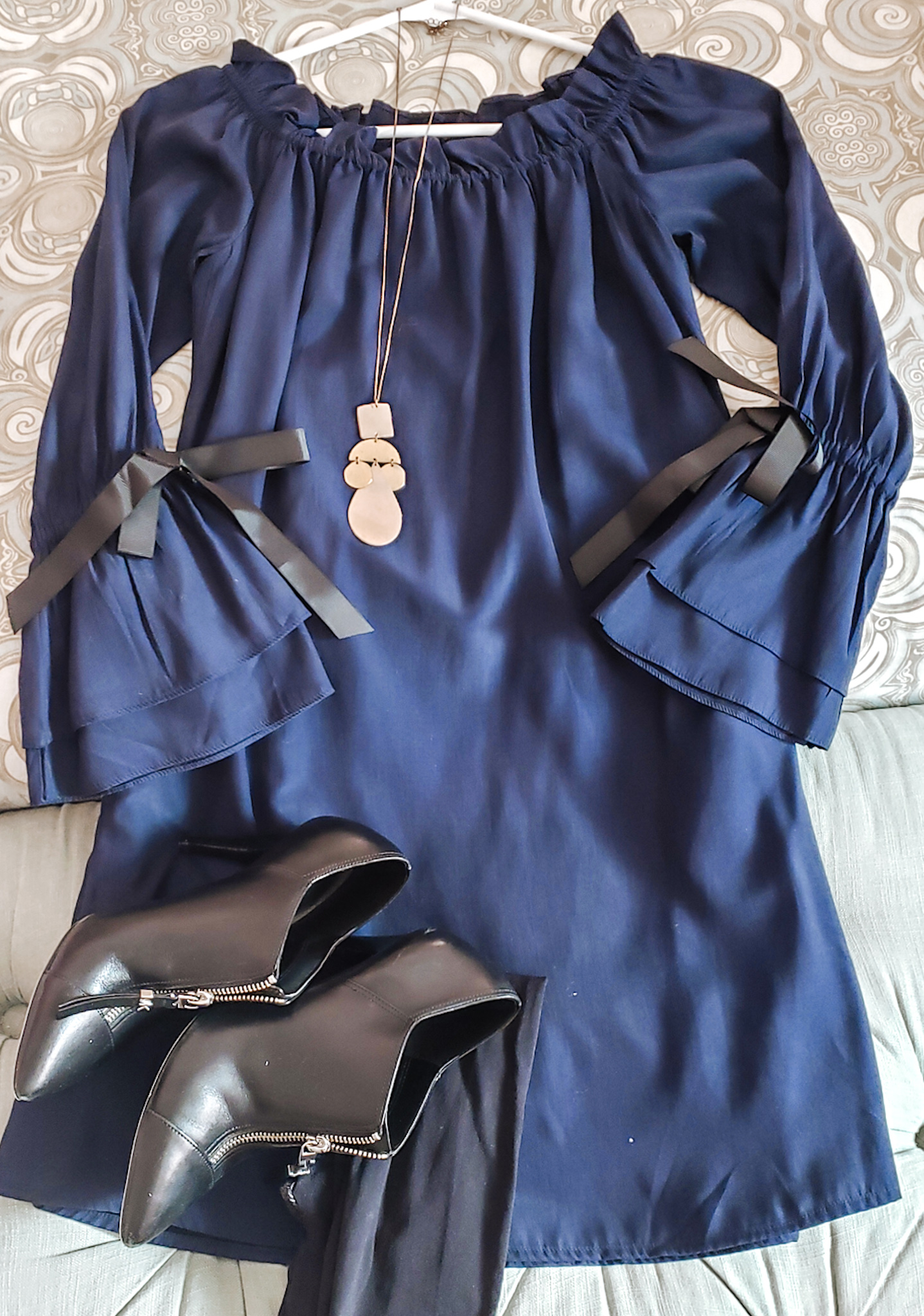 She owns several dresses….her natural comfort zone in these events. We totally agreed that a dress is one of those pieces that is so easy to transition from day to night with a few small changes! And while she had a great jacket that is a go-to, we decided that a more draped, faux suede style moto jacket in a blush color might be add the perfect update as blush is trending for spring but is also a feminine, staple color! She mentioned missing a classic pair of black pumps so we added that to the mix. And from there we tried to add in pieces that she could wear to her events but also mix and match back in to what she already owns for when she is not traveling!